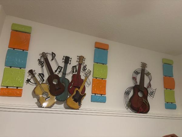 kitchen pots, pans, frames, small mirror, juicer, mixer,